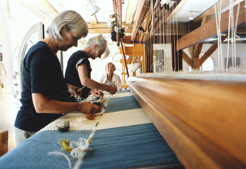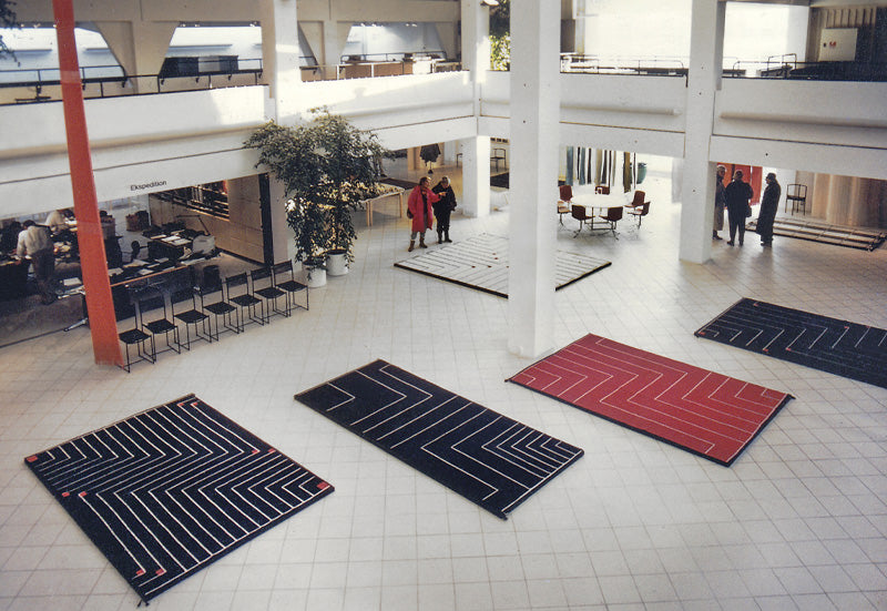 ヴィブケ・クリント(1927年~2019年)は、20世紀のデンマークを代表する織工兼デザイナー。ラグ、ホームテキスタイル、ファッションテキスタイルから、インテリアデザイン、装飾プロジェクトなどまで、多方面で活躍しました。ヴィブケは、コペンハーゲン美術工芸学校で織物を学び、1949年に卒業した後は、ゲルダ・ヘニングのもとで働き、1951年には工房を引き継ぎました。1954年、ヴィブケは、コーア・クリントの息子で、造園家のモーテン・レ・クリント(1918年~1978年)と結婚しました。コーア・クリントは、“デニッシュモダンの父”と呼ばれ、ボーエ・モーエンセン、ハンス・J・ウェグナー、モーエンス・コッホらに大きな影響を与えた建築家、デザイナーです。また、クリント家は、デンマークを代表する王室御用達の照明ブランド「レ・クリント」の創業家としても知られます。ヴィブケは、3人の子どもに恵まれました。そして、子育てと並行して、工房を運営しながら後進の育成にも尽力しました。同時に、織工として、デザイナーとして、自身の創作や、フィン・ユール、ボーエ・モーエンセン、ハンス・J・ウェグナーら、錚々たるデザイナーとのコラボレーションを通して、キャリアを築いていったのです。“世界でもっとも美しい美術館”と称されることもある「ルイジアナ近代美術館」の設計で知られる建築家、ヴィルヘルム・ヴォラートは1961年、デンマークのインテリア雑誌『BO BEDRE』で次のように語っています。「ヴィブケ・クリントのラグやファブリックは、建築家へのギフトのよう。建築家がつくる空間を、人々が気軽にくつろげる空間に変えてくれるから」2019年に亡くなるまで、ヴィブケは60年ほどに及ぶキャリアを通して、数多くの賞を受賞しました。2000年には、デンマーク女王から「ダンネブロ勲章」(文化、芸術、スポーツなどの分野で特に功績のあった人物に与える勲章)を授けられました。